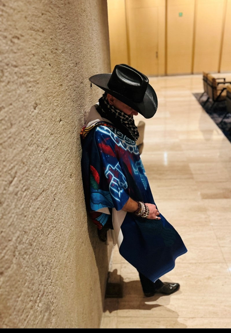 To represent our culture and his words, I partnered up with Mexican artist Christopher Delgadillo Elias (aka Dual) @dualone_hem from Rosarito, Mexico. The Kangaroo pocket and hood Sol, Mar are mandalas which are inspired by dream catchers that represent the beginning of everything. From the first particle, the creation of the Sun, Wind, Fire, Plants, Water and then Man. The sunset represents the Day of the Dead, tequila and the hummingbirds are the messengers from beyond…The night represents Kumiai Indians of Baja California as they would worship the spirits living in the desert.